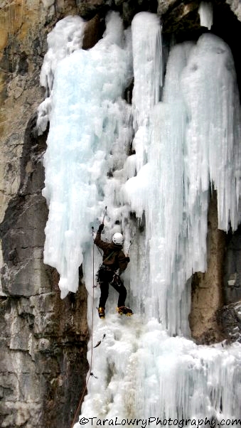 Climbing waterfalls in Banff National Park, Canada.